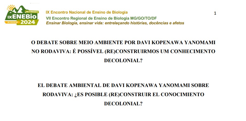 artigo científico O DEBATE SOBRE MEIO AMBIENTE POR DAVI KOPENAWA YANOMAMINO RODAVIVA: É POSSÍVEL (RE)CONSTRUIRMOS UM CONHECIMENTODECOLONIAL? 12/01/2026